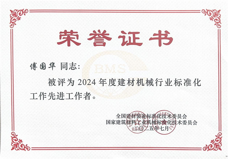 सोही समयमा आयोजित प्रशंसा सत्रमा, क्वाङगोङ मेसिनरी कं, लिमिटेडलाई "२०२४ मा निर्माण सामग्री मेसिनरी उद्योगमा मानकीकरण कार्यमा उन्नत सामूहिक" उपाधि प्रदान गरिएको थियो र कम्पनीका उपमहाप्रबन्धक फु गुओहुआलाई "एडभान्स्ड कलेक्टिभ इन स्ट्यान्डर्डाइजेसन वर्क इन द बिल्डिङ मटेरियल मेसिनरी इन्डस्ट्री इन द बुचिन वर्कर्स इन स्ट्यान्डर्डिङ म्याटरी वर्कर इन माइचिन" को उपाधि प्रदान गरिएको थियो। २०२४"।