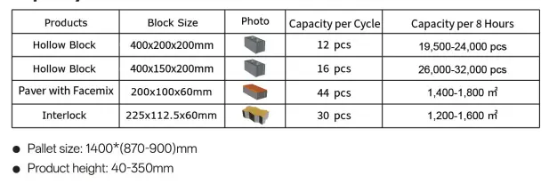उपकरणले सामान्य ब्लकहरू, सजावटी ब्लकहरू, र इन्सुलेट ब्लकहरू जस्ता बहु कार्यात्मक प्रकारहरू कभर गर्दै खोक्रो इट्टा उत्पादनहरूको विस्तृत विविधता उत्पादन गर्दछ। प्वाल आकारहरू वर्ग र राउन्ड प्वालहरू समावेश गर्दछ, र व्यवस्थाले एकल-पङ्क्ति, डबल-पङ्क्ति, र बहु-पङ्क्ति प्वाल संरचनाहरू प्राप्त गर्न सक्छ। मोल्ड परिवर्तन गरेर वा उपकरण प्यारामिटरहरू समायोजन गरेर, विभिन्न प्रकारका ईंट उत्पादनहरू विभिन्न बजार मागहरू पूरा गर्न लचिलो रूपमा स्विच गर्न सकिन्छ।